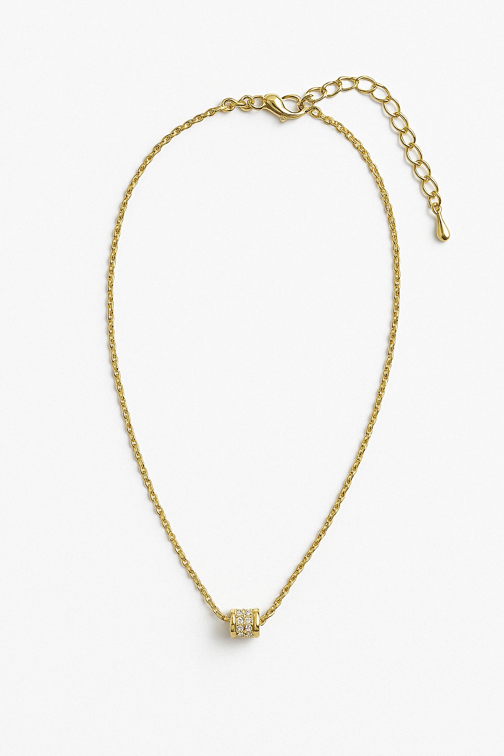 Add a touch of timeless elegance to your jewelry collection with this stunning gold-plated necklace. Featuring a delicate chain and a beautifully crafted barrel-shaped pendant encrusted with sparkling cubic zirconia stones, this piece effortlessly blends minimalism with luxury. The adjustable clasp ensures a perfect fit for any neckline, making it an ideal accessory for both everyday wear and special occasions.